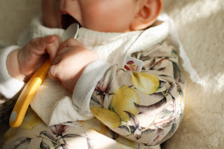At the moment Nore mainly gets (pureed) fruit and vegetables, but gradually bread, potato, rice, etc. are also added to her menu. I haven't quite found my way in the baby food maze yet, but watching Nore enjoy all kinds of new flavors she gets to discover helps me a long way. My insecurity is in addition to wanting to do well and healthy, also in fear. The fear that she will choke or worse... How do other moms deal with this? Hopefully I will soon be able to write a blog about the outcome of my search, with successful recipes for example. But in the meantime, any tips are welcome.