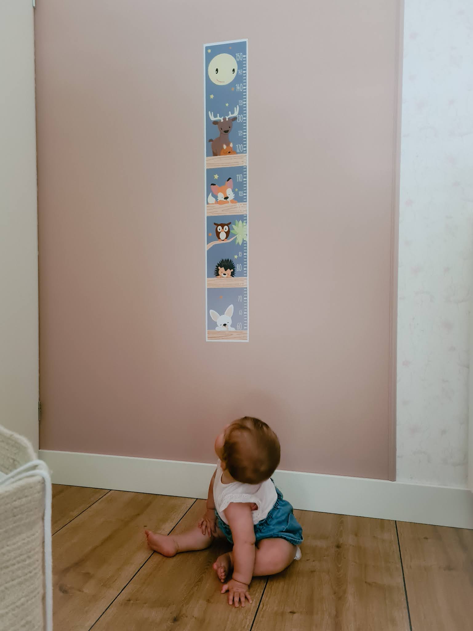 Een van de muren hebben wij deels behangen met (verrassend) een wit behang met een rustige, roze bloemenprint. Toch miste er nog iets aan deze muur. We verfden de delen van de muur die niet behangen waren met een oud-roze verf en werkten de strook behang af met mooie sierlijsten die ook in de kleur oud-roze werden geverfd. Het resultaat is super en de kamer oogt nu zoveel warmer. Het is een kleine aanpassing die een wereld van verschil maakt. Daar de witte meubels allemaal kleine hout details hebben, zoals de poten en de deurknoppen, hingen wij ook nog houtkleurige wandopbergers op. Het kamertje is af! En wat ben ik blij met het resultaat. Hopelijk vindt Nore het kamertje straks net zo mooi als ik.