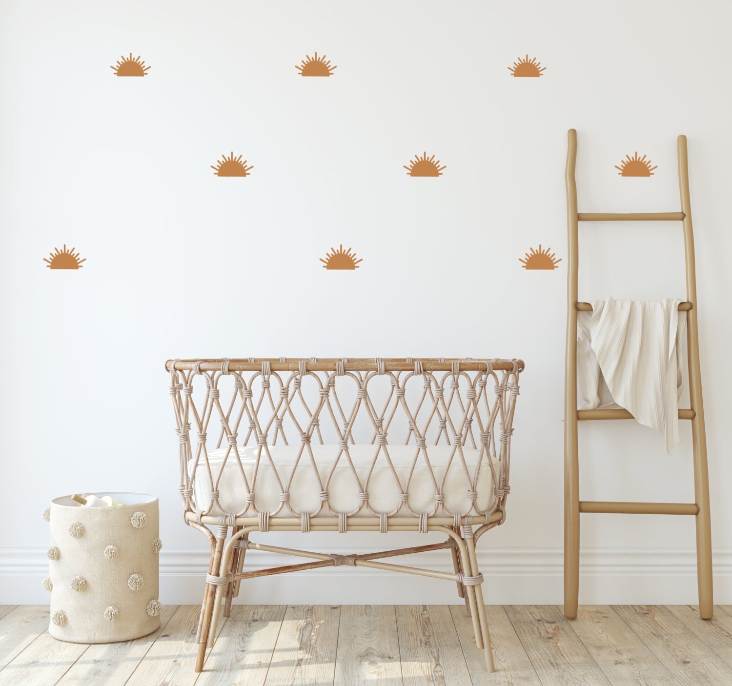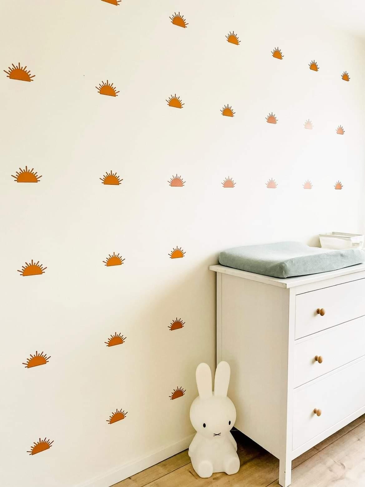 Geef de babykamer een BoHo gevoel met deze halve zonnetjes muurstickers.