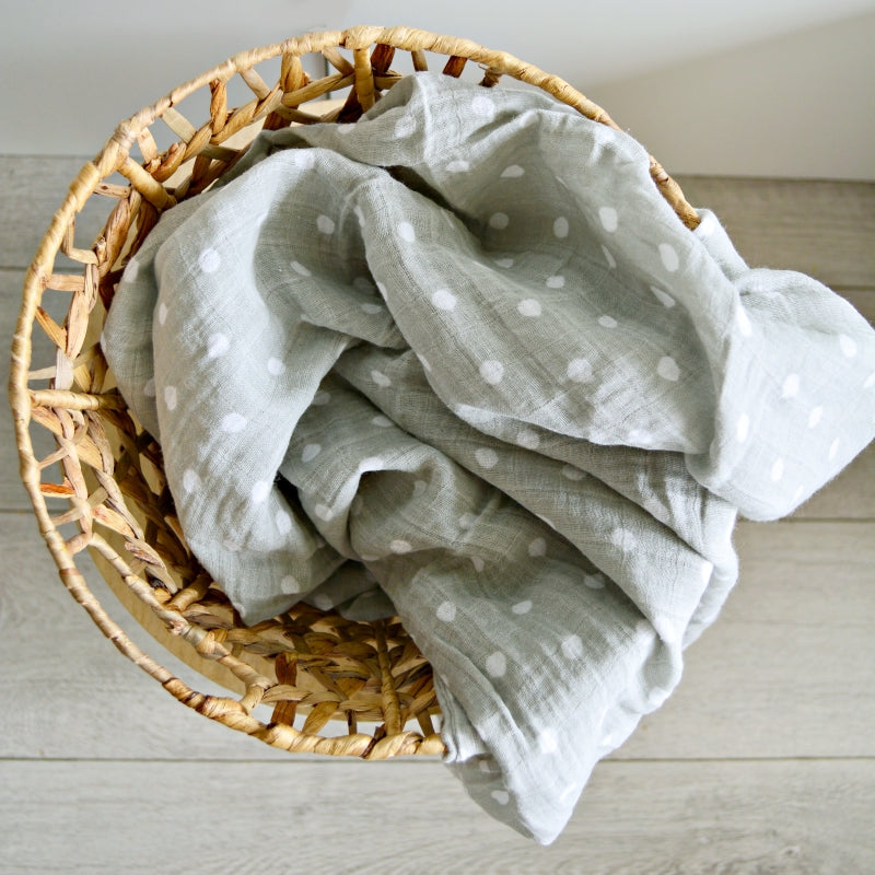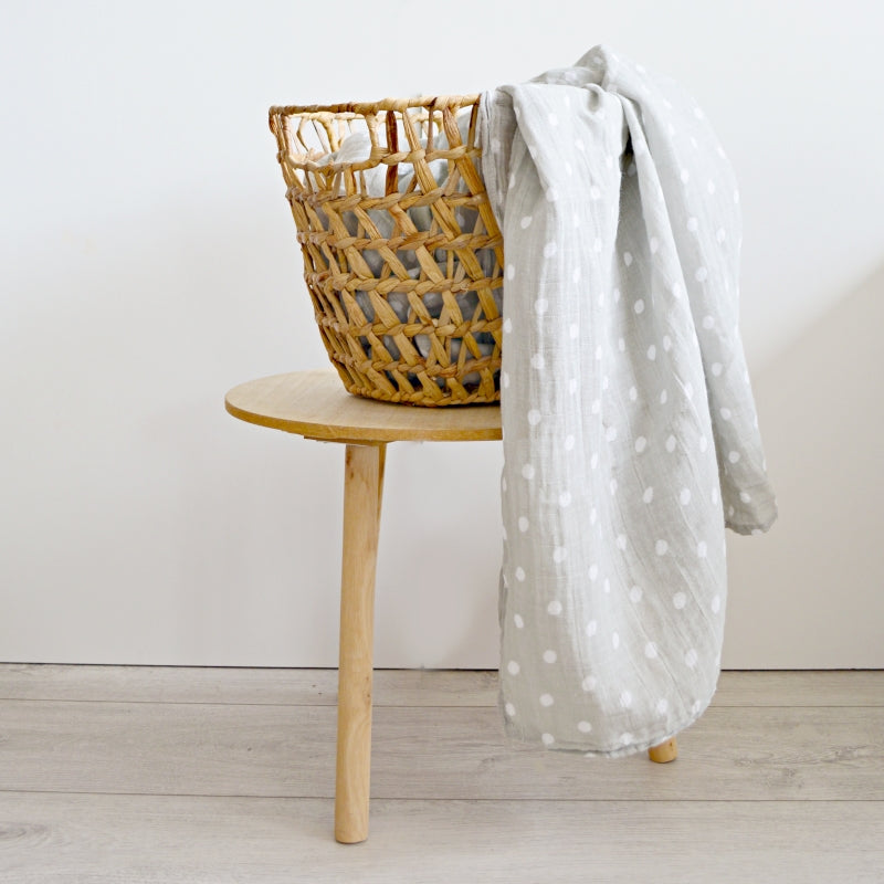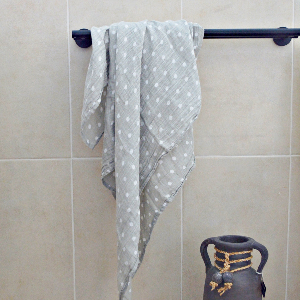Hydrofiele inbakerdoek - Zilvergrijs Luier met stippen