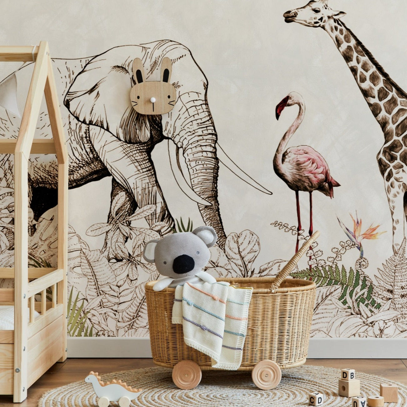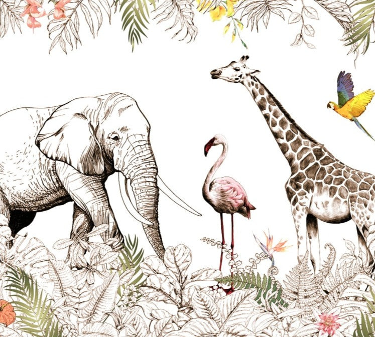 Deze jungle muurschildering is gemaakt voor onze kleine kunstenaar. Je kind kan er kleine tekeningen op maken of gewoon wat meer kleuren toevoegen - een geweldige manier om dit behang aan te passen.