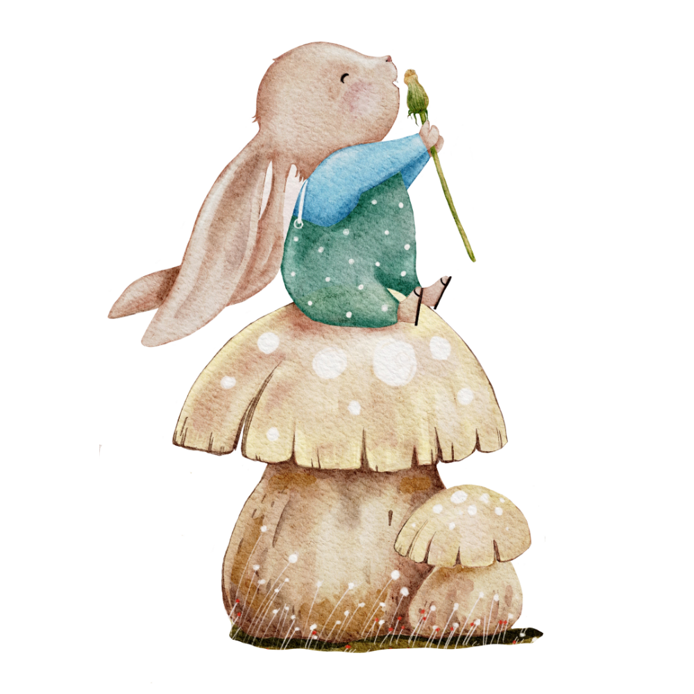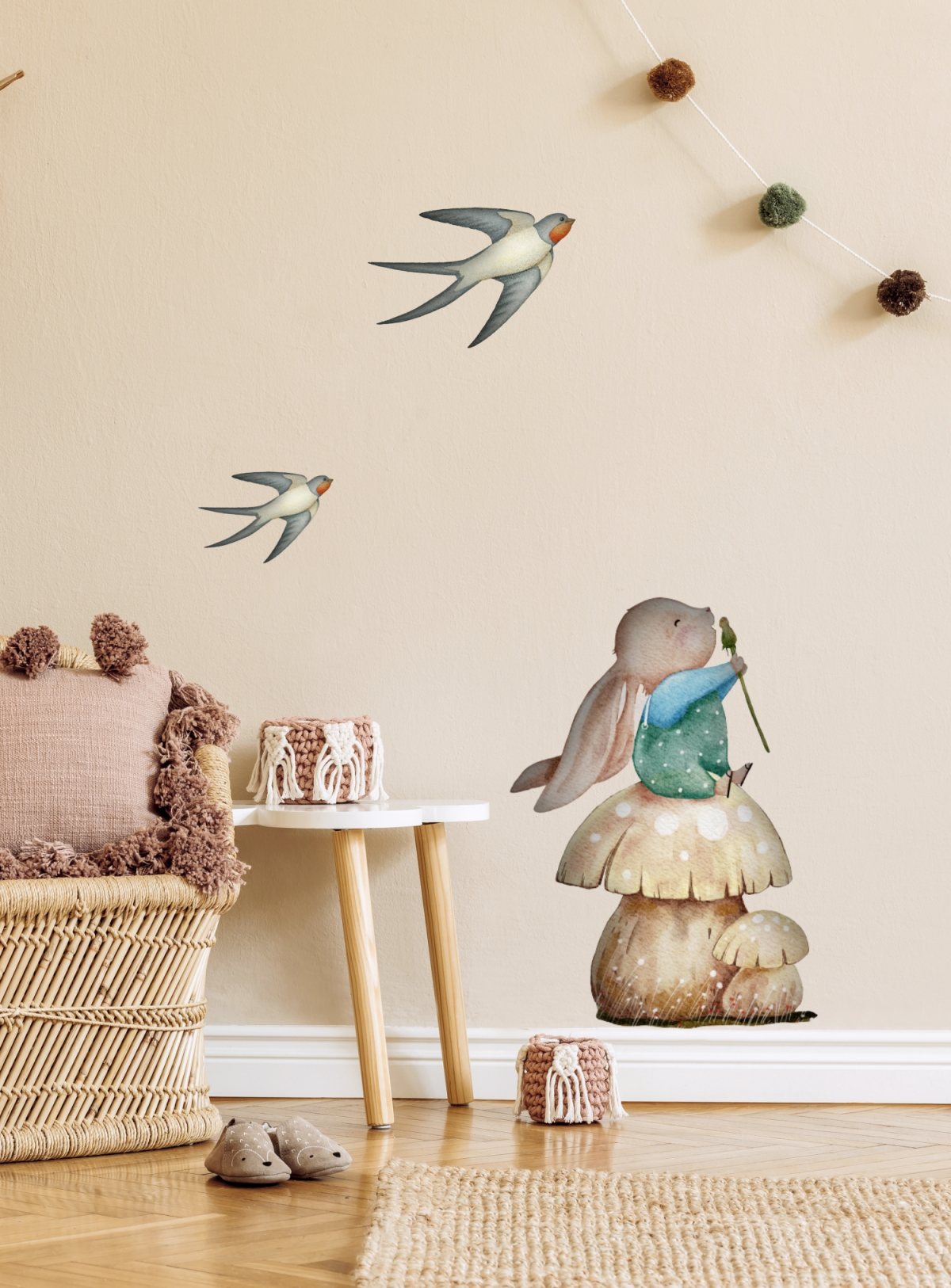 Het schattigste konijn dat op een paddenstoel zit en een wens doet. We hopen uw kind te inspireren om creatief en denkbeeldig te spelen met onze muurstickers en andere kunst.