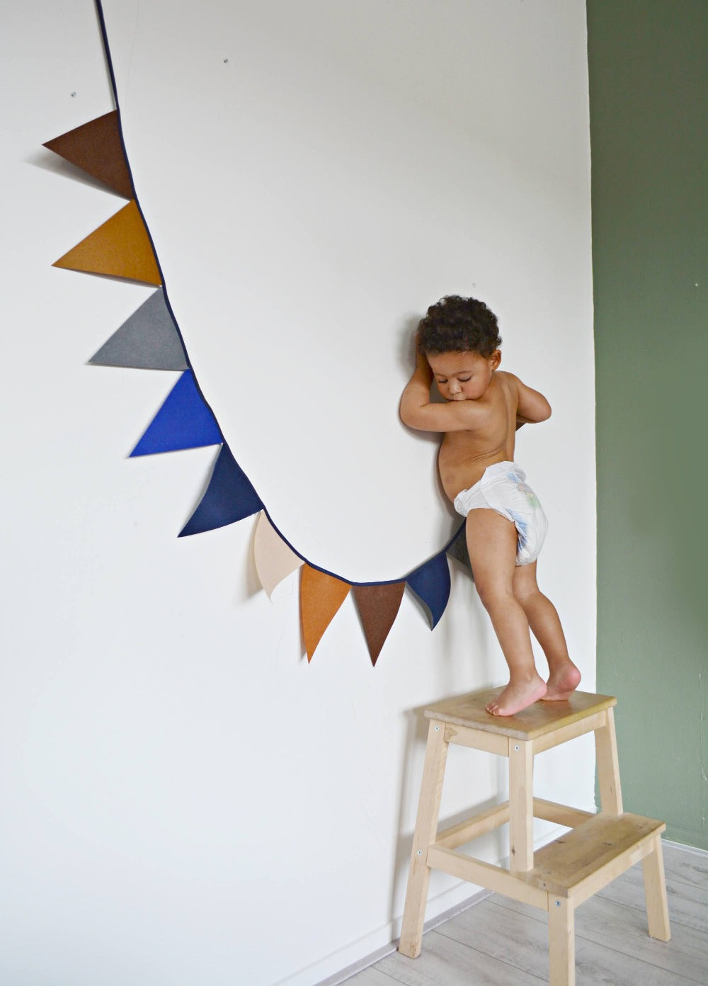 Wil je plezier en kleur toevoegen aan de kinderkamer? Een slinger is een goed idee! Eenvoudig op te zetten, gemakkelijk te verwijderen, deze slinger voegt kleuren toe zonder al te druk te zijn om de babykamer ontspannen te houden, maar voegt toch zoveel plezier toe.