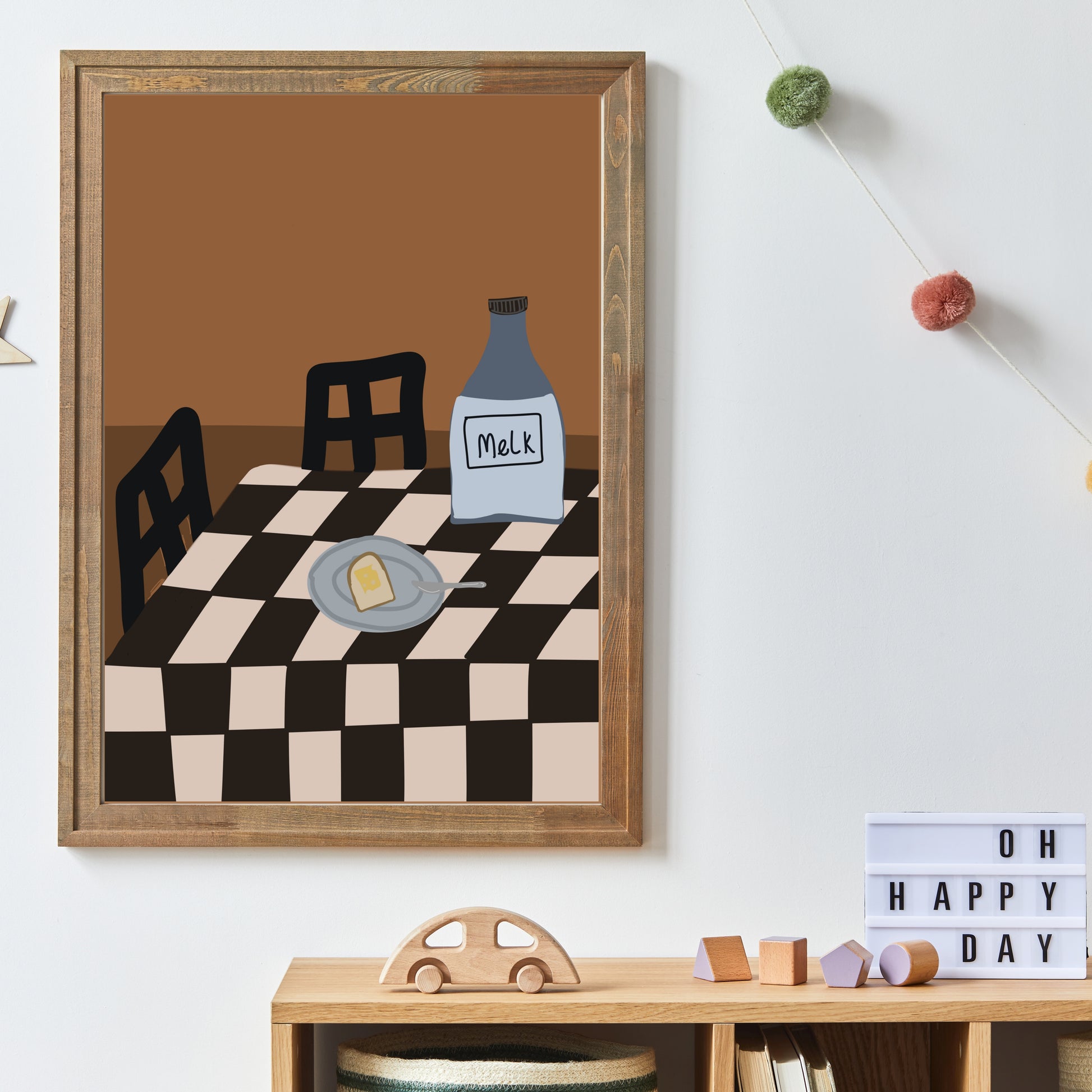 Een poster in oude stijl, maar op een moderne manier ontworpen. Het kleurenpalet is rustgevend en stoer, waardoor de babykamer erg interessant wordt.