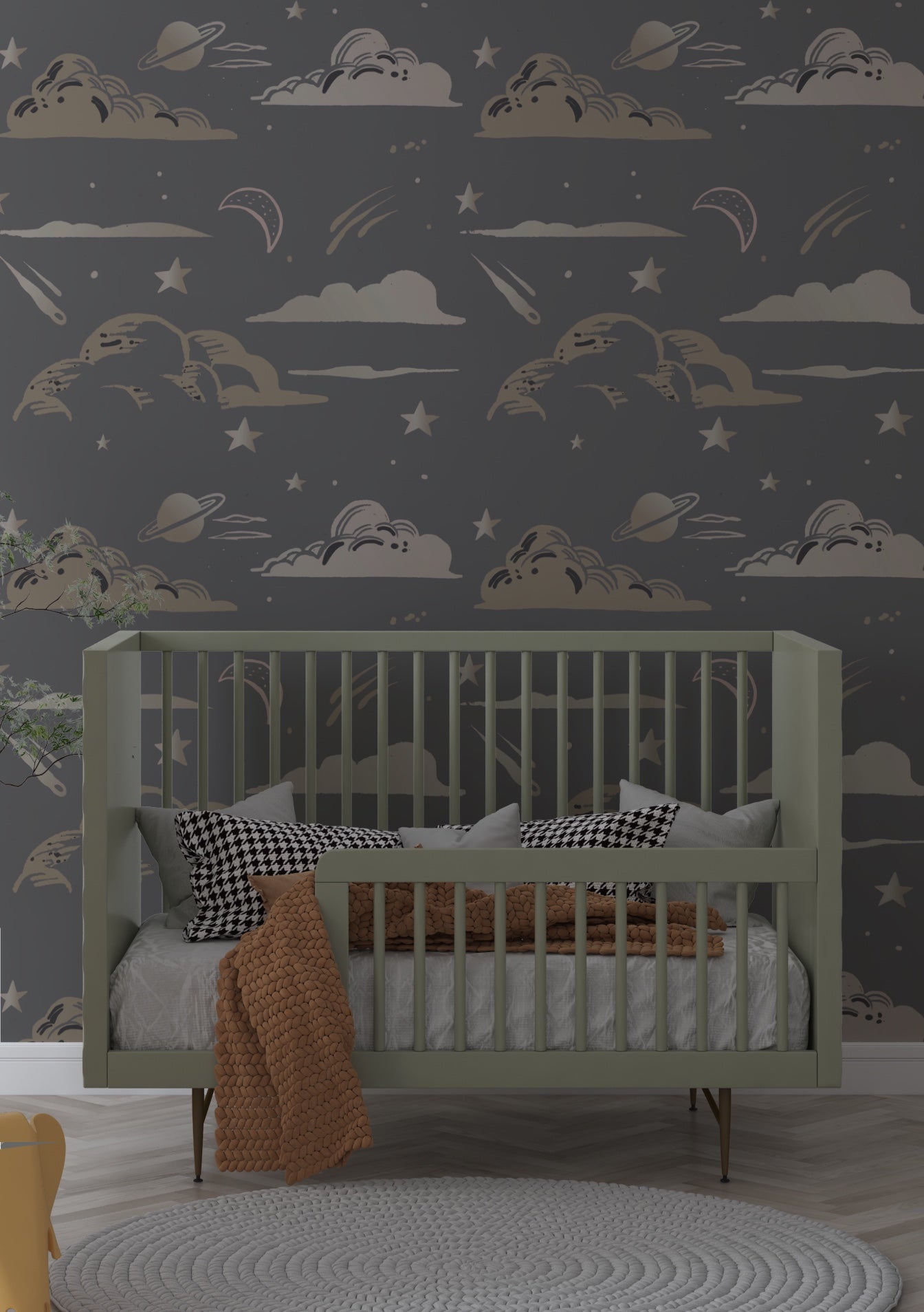 Voeg fantasie toe aan de kinderkamer met dit prachtige behang. Slaap tussen de sterren, de wolken en de maan en inspireer tot denkbeeldig spel met dit prachtige behang.