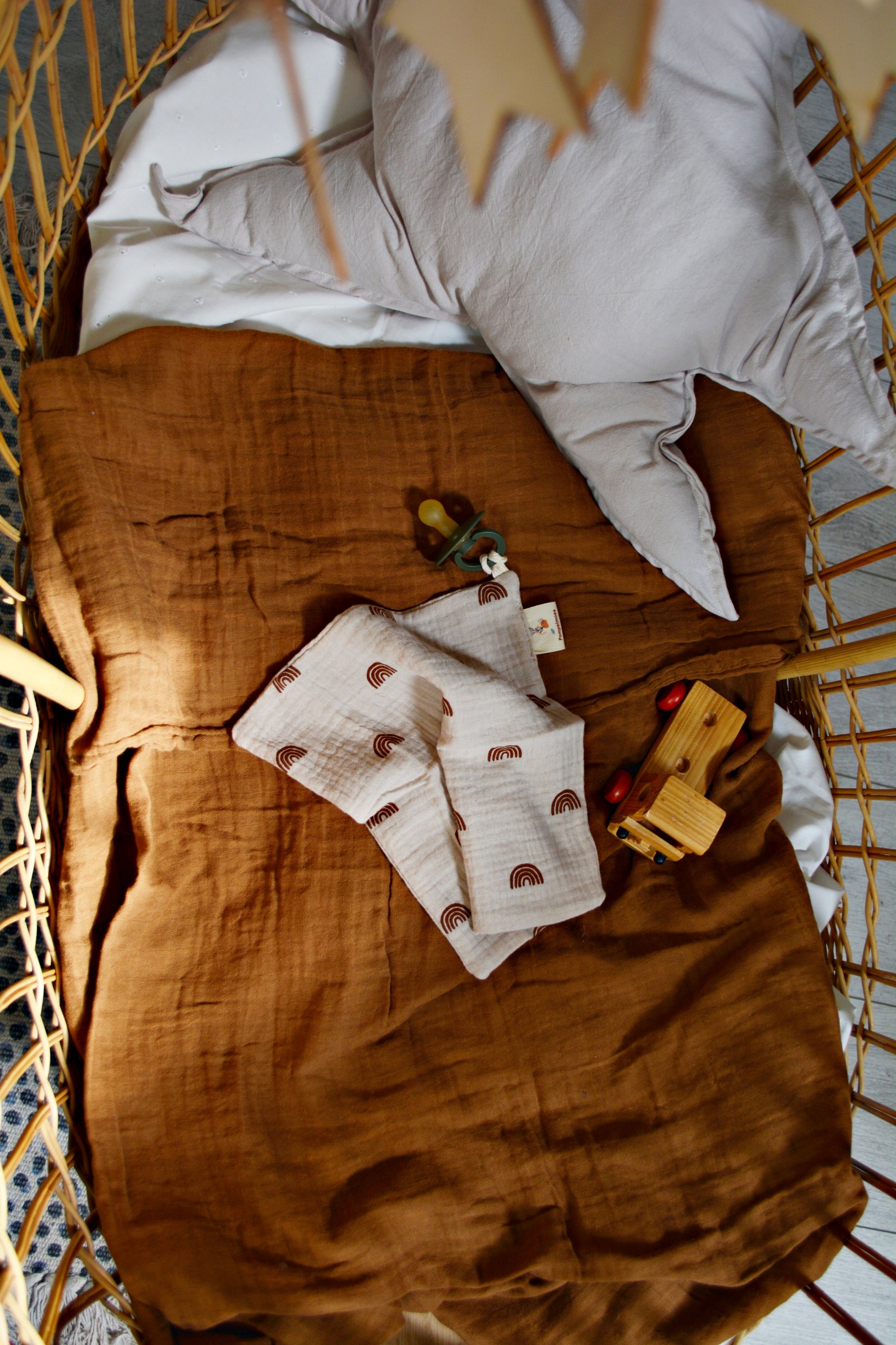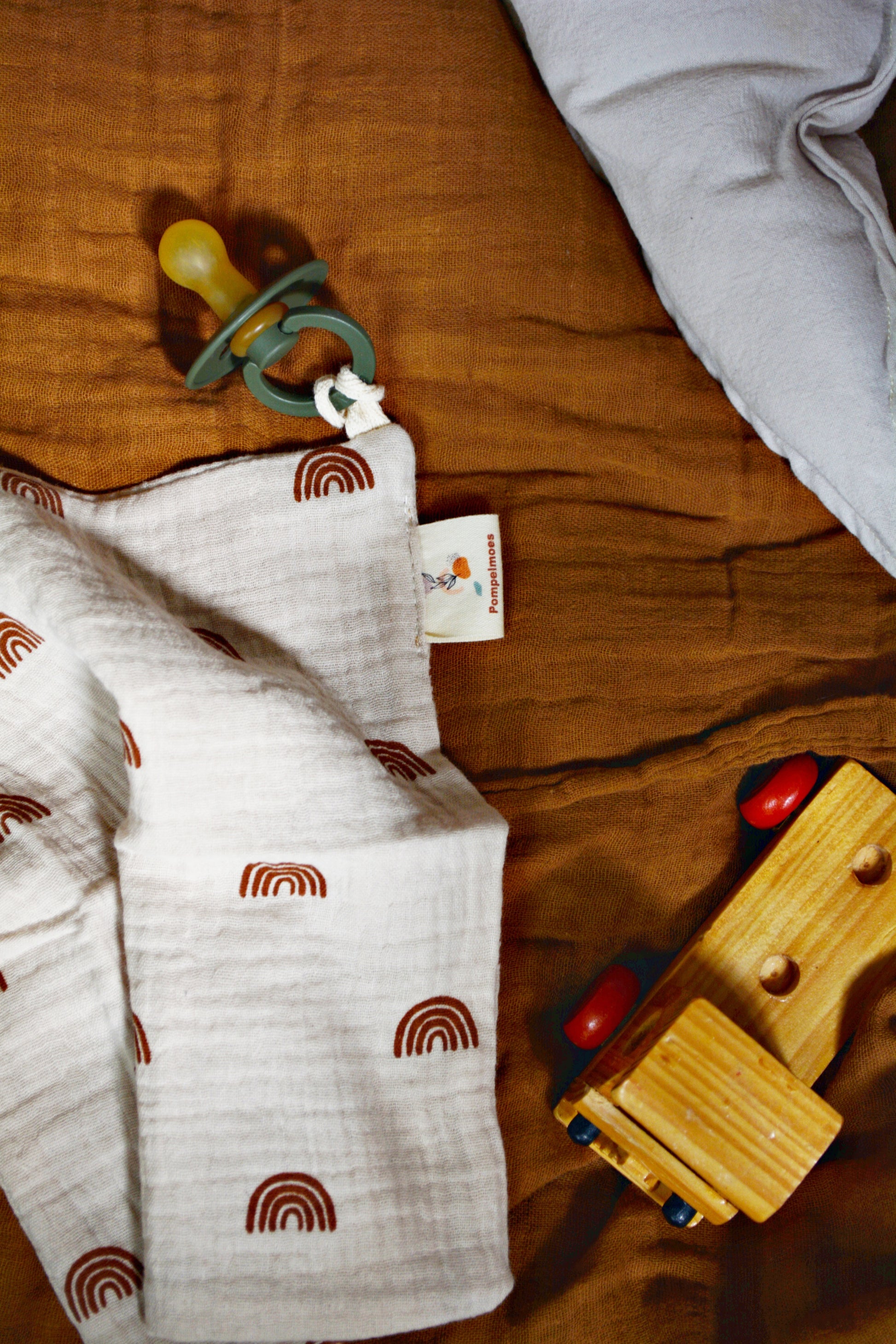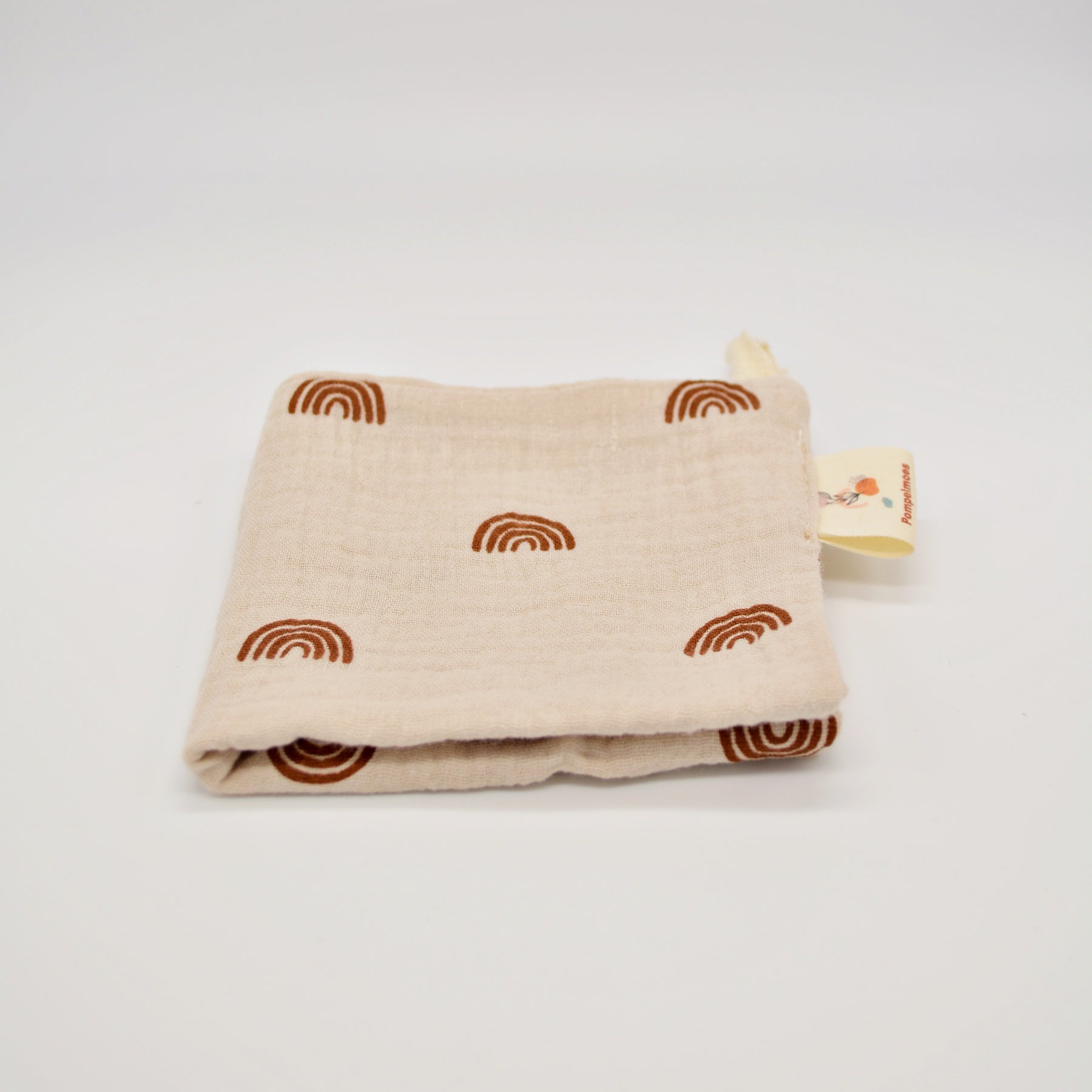 Vierkant Hydrofiele speendoekje - Beige met roest regenboogjes