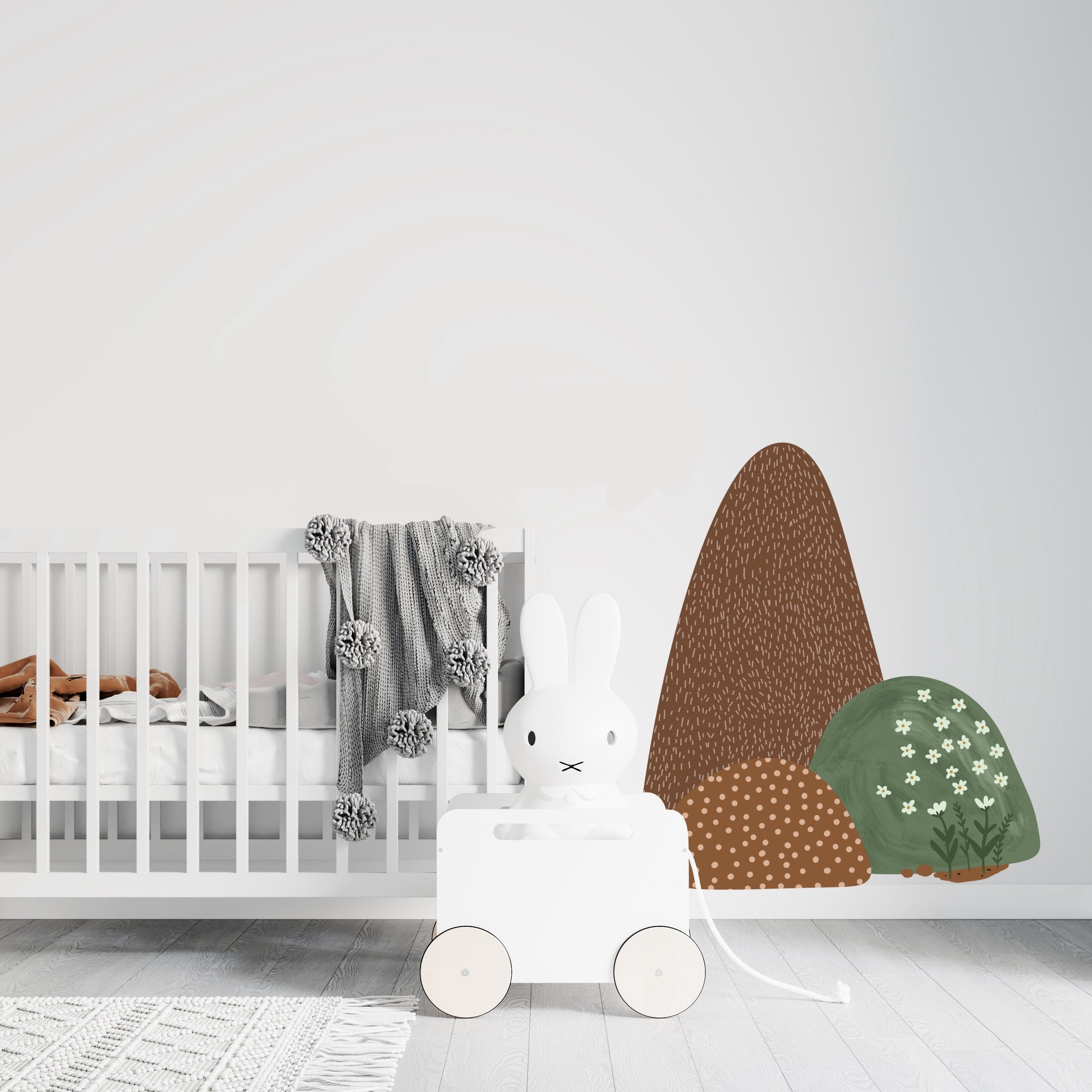 Een XL muursticker om de babykamer een upgrade te geven. De warme kleuren zijn zorgvuldig gekozen om de kinderkamer rustig en gezellig te houden en toch speels te maken.