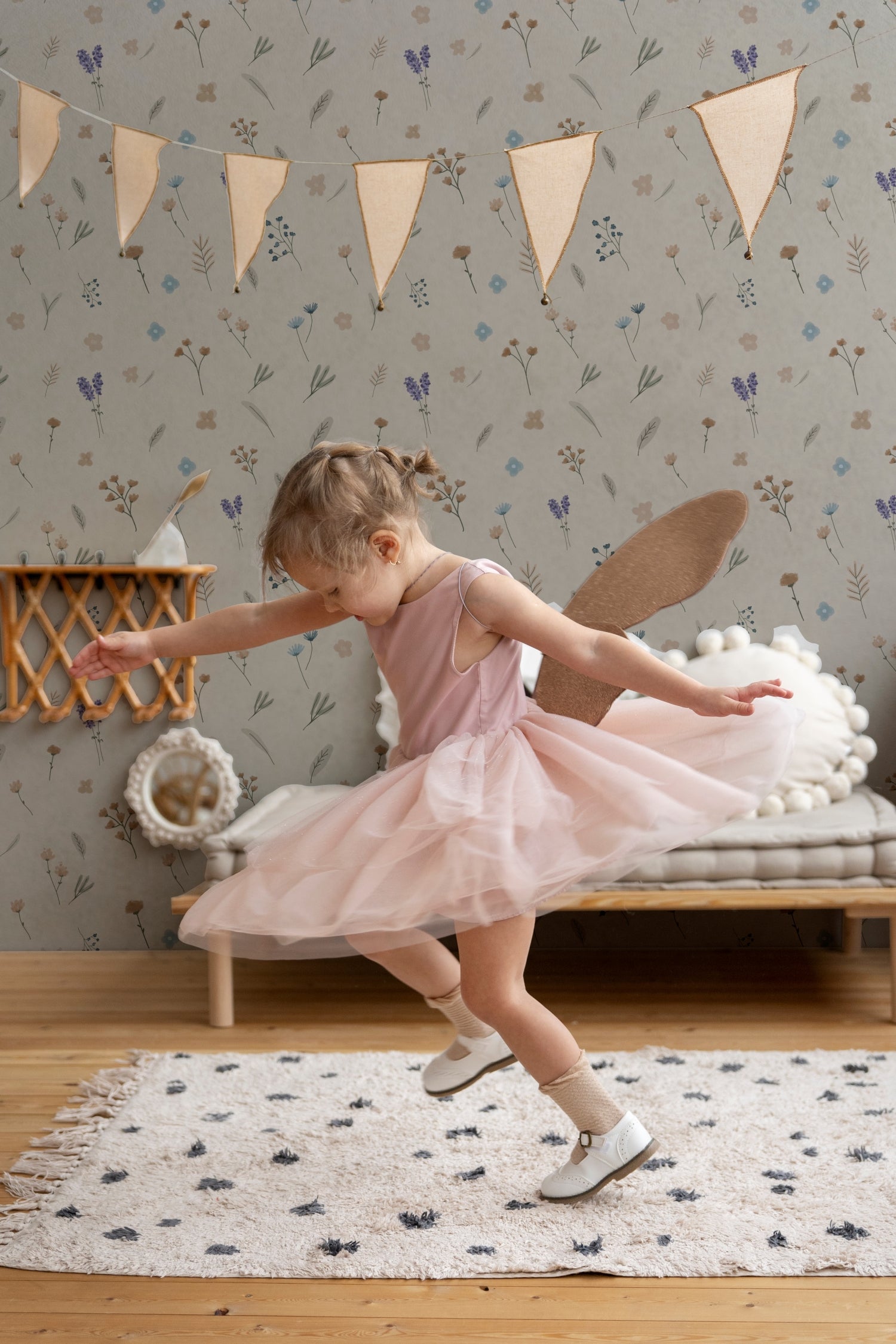 Dit aquarel-behang stijl is een prachtig behang met bloemen voor de babykamer . De zachte kleuren zullen een zeer gezellige en gastvrije sfeer creëren in je babykamer.