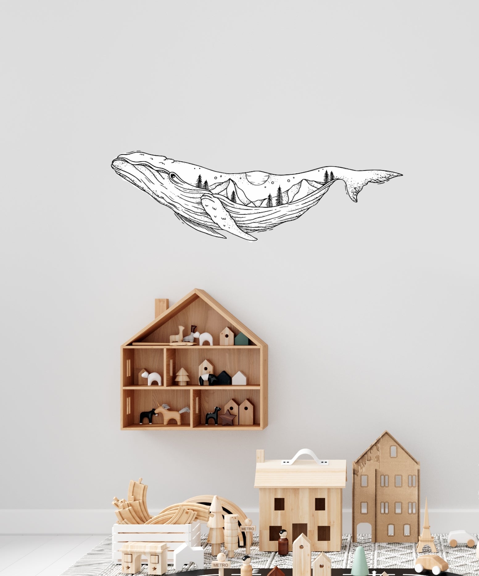 Ben je op zoek naar iets unieks voor de kinderkamer? Deze XL walvis zal de toon zetten voor je kinderkamer of speelkamer. Deze abstracte muursticker is een prachtig kunstwerk, prachtig ontworpen om jou en je kind te inspireren.