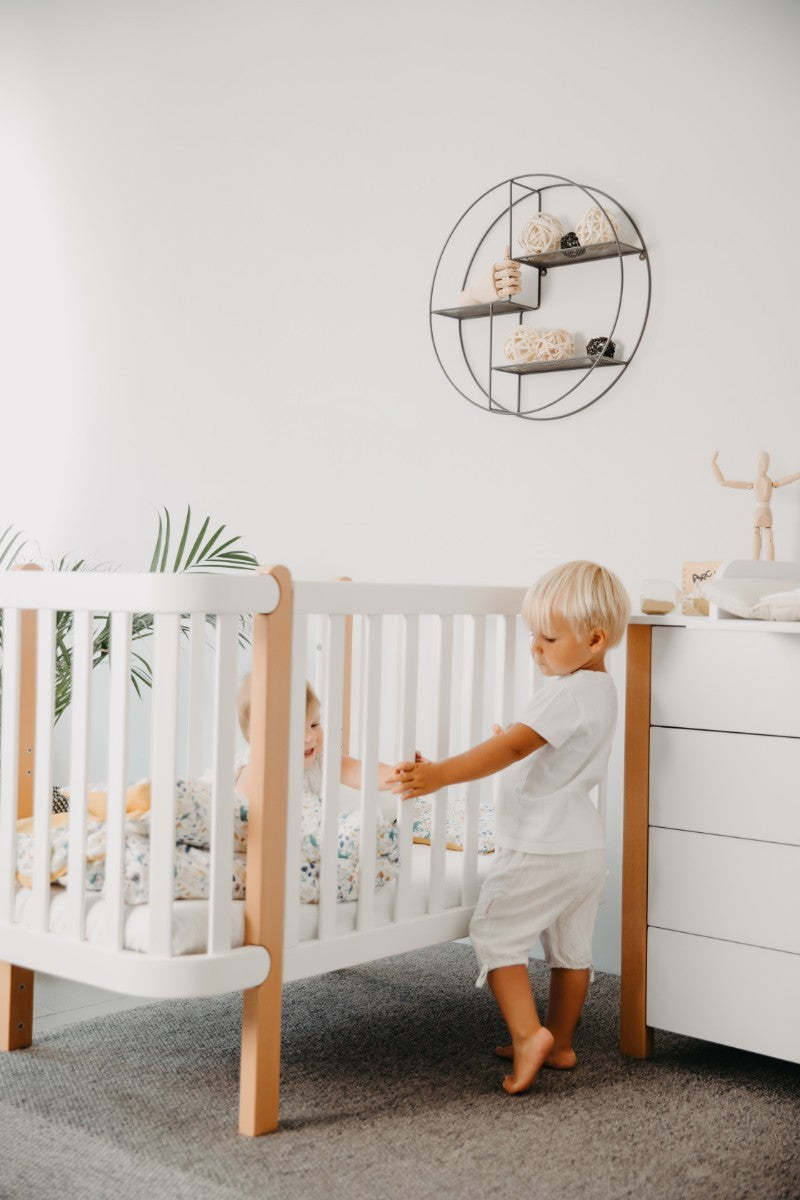 YappyÉtude wiegset (korte zijden en matrasbodem) WIT/SKYGREY - verandert het YappyEtude 120 * 60 bed in een 80 * 60 wieg.