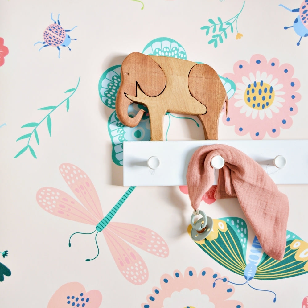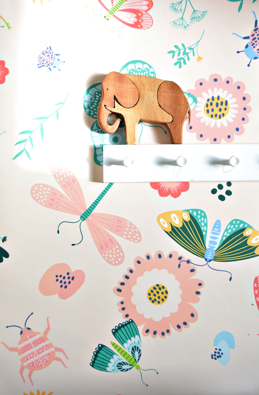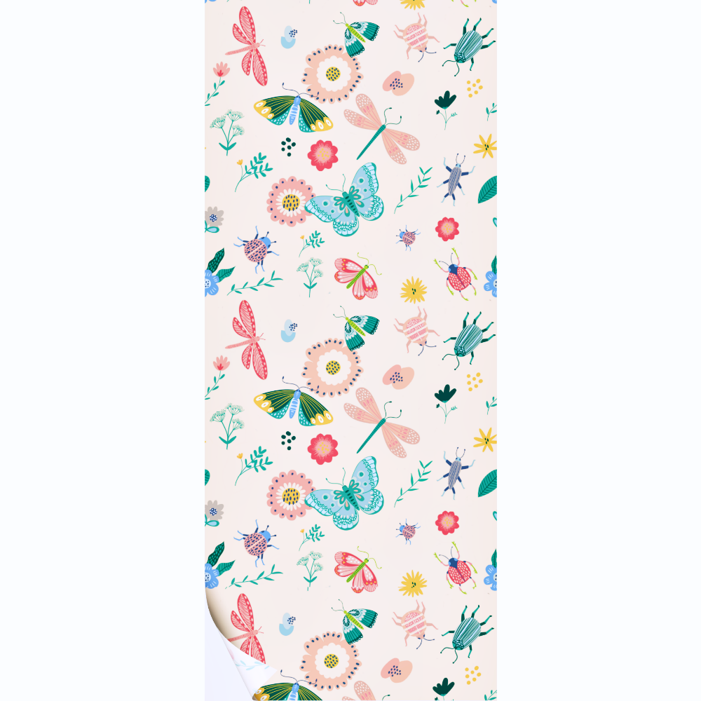 Prachtig behang voor een dromerige kleine, nieuwsgierige avonturier. Het ontwerp is met de hand getekend en heeft prachtige zomerbloemen, vlinders en insecten. Een geweldige combinatie om u te herinneren aan een goed bestede zomerdag.